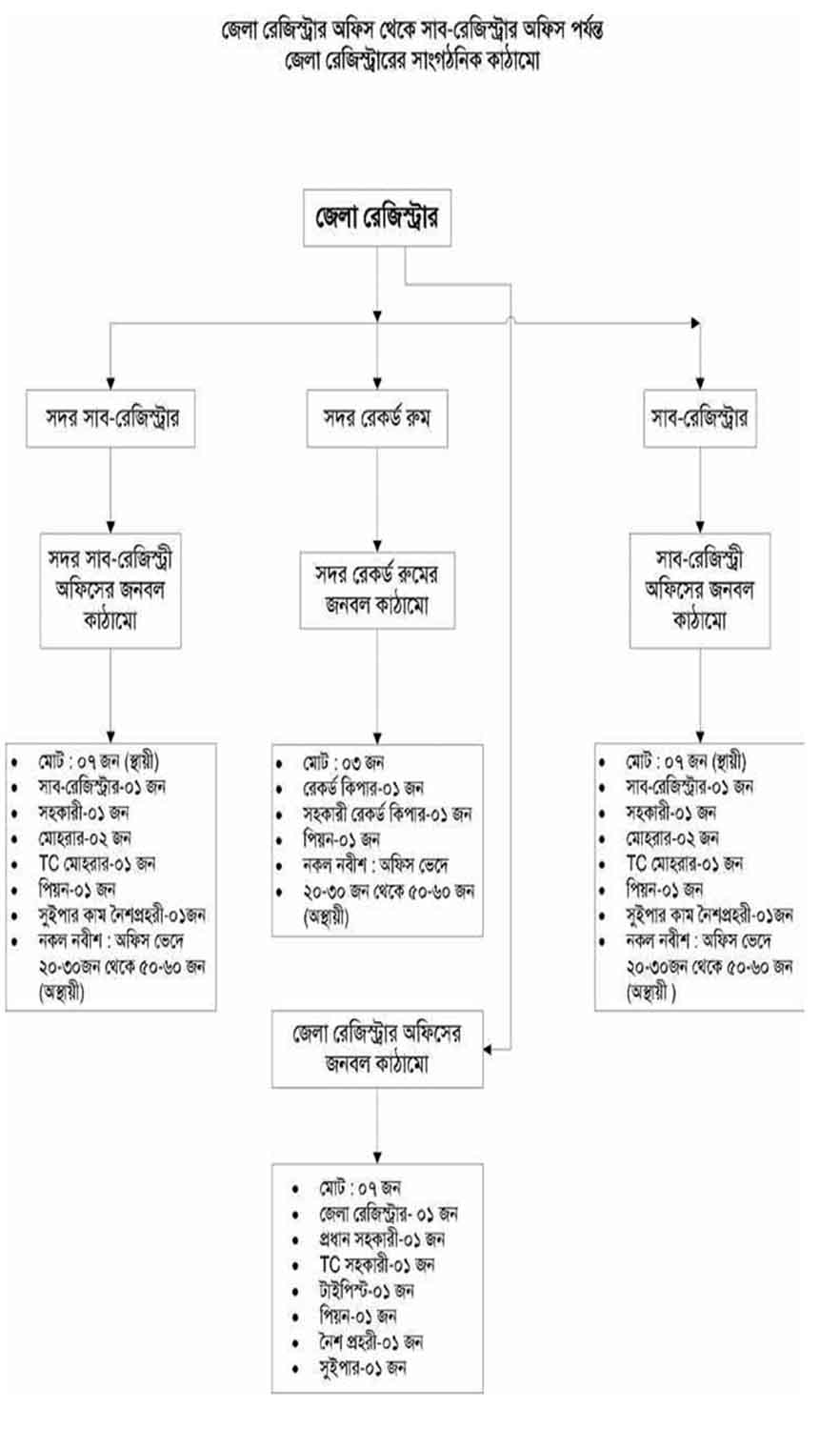 জেলা রেজিস্ট্রার থেকে উপজেলা সাব রেজিস্ট্রার এর অর্গানোগ্রাম