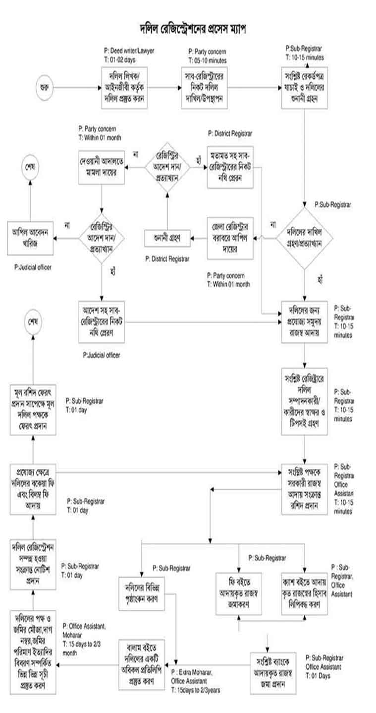 দলিল রেজিস্ট্রেশনের প্রসেস ম্যাপ